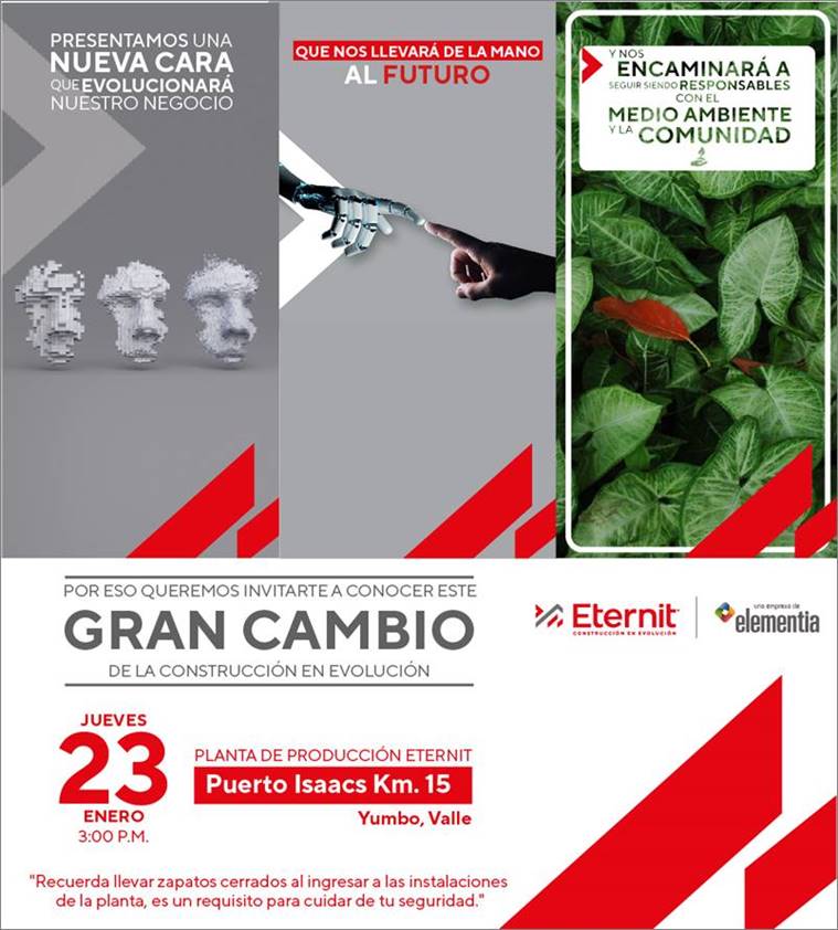 ETERNIT COLOMBIANA S.A., una compañía del grupo Elementia, proveedor de soluciones integrales para la construcción, anunció la reapertura de su planta de producción localizada en Yumbo, Valle del Cauca, la cual pasó por un proceso de transformación tecnológica para ampliar su capacidad.